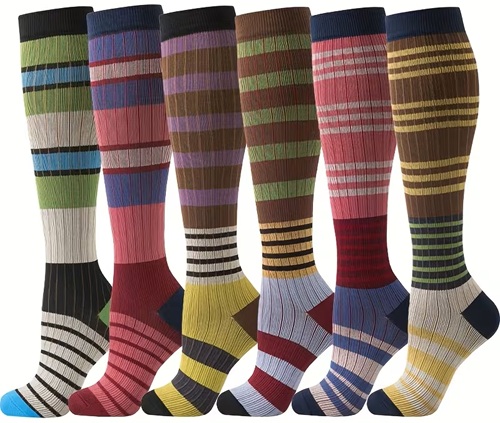 Elastic Arch- Multi-Color Stripe Patterns - Compression Socks for Sports, Travel - Machine Washable, Knee High Socks, Socks Compression Unisex, Extra Large Compression Socks, Plus Compression Socks, Plus Size Compression Socks for Men, Compression Socks for Women Plus Size, Compression Long Socks, High Socks for Men, Xxl Compression Socks for Women Xmas, Knee High Compression Socks, Socks Compression for Women,
